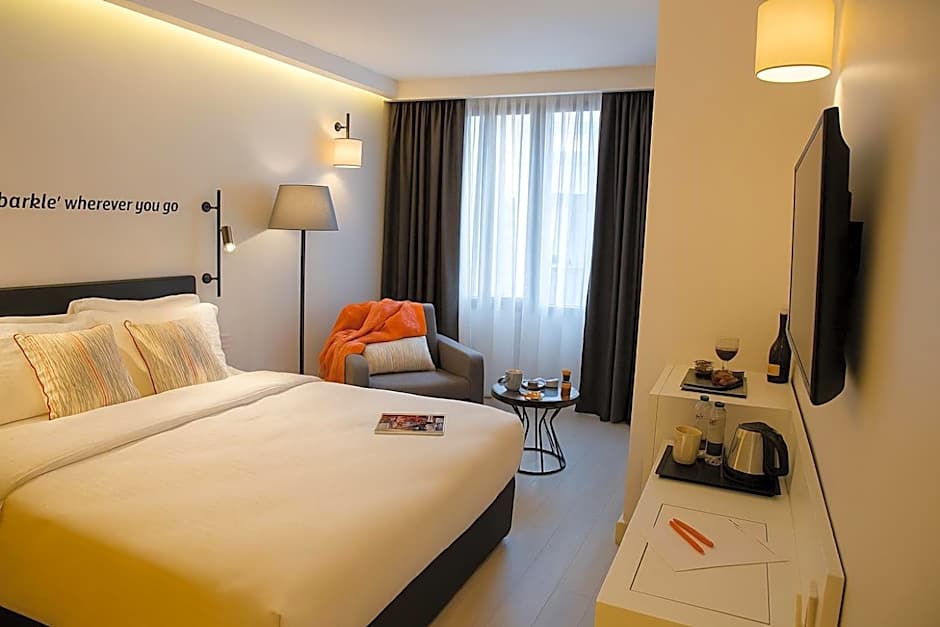 Providing free toiletries, this twin/double room includes a private bathroom with a shower, a hairdryer and slippers. The air-conditioned twin/double room provides a flat-screen TV with satellite channels, soundproof walls, a mini-bar, a seating area as well as city views.